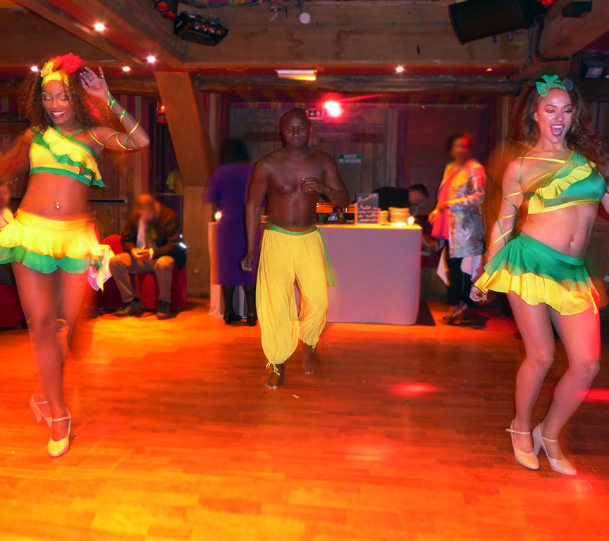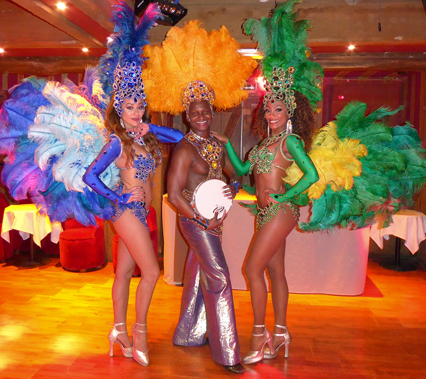 Danseuses BrésiliennesVivez le magnifique carnaval de Rio, festival de couleurs, de plumes et de paillettes et vibrez sur les rythmes endiablés de la Samba. • A partir de 2 artistes (danseuses et/ou danseurs Capoeira) • Percussionniste en option • Durée de la prestation : 3 passages de 15 mn • Loge et espace scénique à prévoir de 5x3 m minimum • Changement de costumes à chaque passage • Invitation du public à danser Extrait danseuses Brésiliennes |
