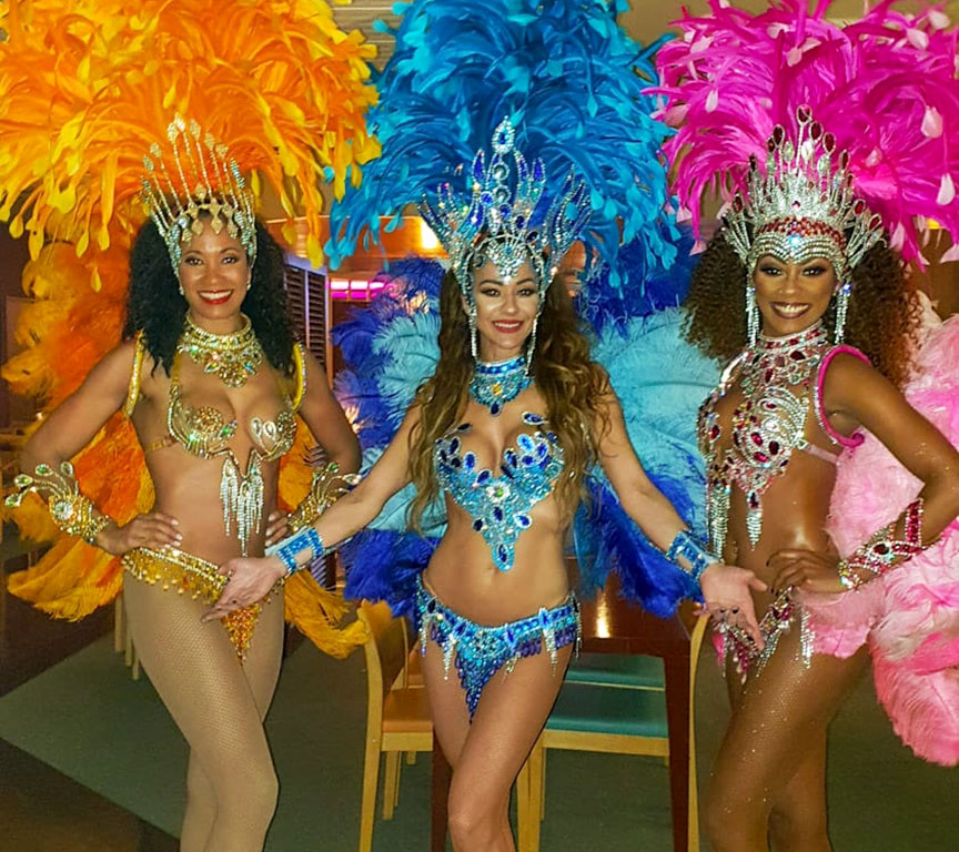 Danseuses BrésiliennesVivez le magnifique carnaval de Rio, festival de couleurs, de plumes et de paillettes et vibrez sur les rythmes endiablés de la Samba. • A partir de 2 artistes (danseuses et/ou danseurs Capoeira) • Percussionniste en option • Durée de la prestation : 3 passages de 15 mn • Loge et espace scénique à prévoir de 5x3 m minimum • Changement de costumes à chaque passage • Invitation du public à danser Extrait danseuses Brésiliennes |