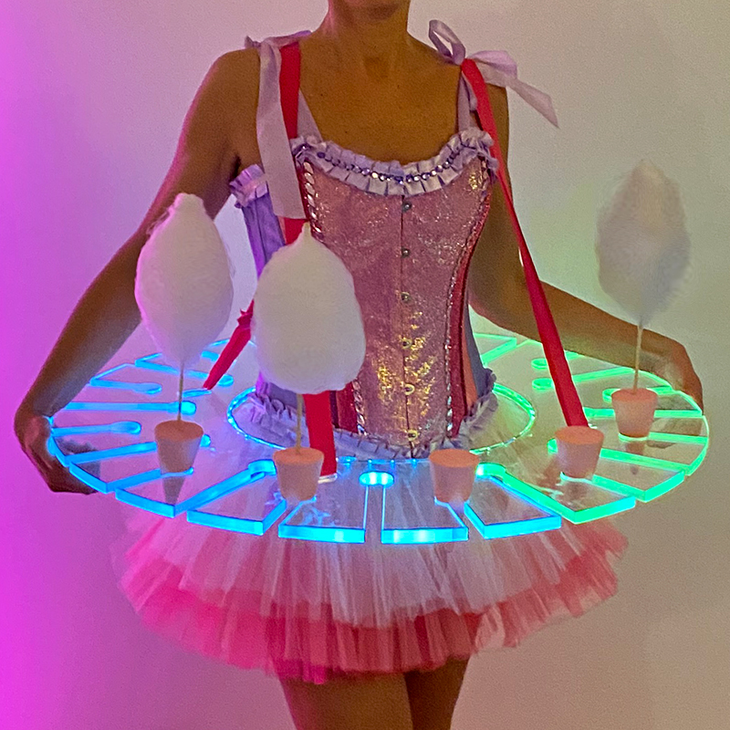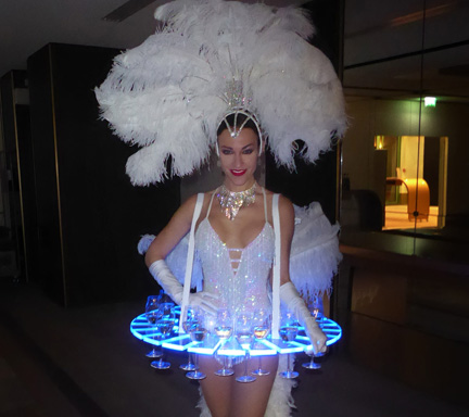 Service Champagne sur Plateau LEDUne animation unique et lumineuse pour vos événements. L'agence Evénis crée en 2016, un nouveau service de distribution de champagne, de shots ou cornets apéritif ! Des hôtesses avec leurs plateaux à LED, en déambulation parmi vos invités, pour un service original et lumineux de flûtes de champagne, de shots ou alors de cornets apéritif salé ou sucré ou verrines apéritifs (verrines coniques). ⚠ Le plateau est conçu pour les flûtes en plastique, shots et cônes en papier et non pour la verrerie lourde. • A partir de 2 hôtesses • Costume au choix • 24 emplacements sur le plateau pour 12 flûtes en verre ou 24 shots • Durée : 1 x 60 mn ou 2 x 30mn (sur un créneau de 2h maximum) • A votre charge : Verres à pied, shots, cornets ou support conique + contenant Extrait vidéo des hôtesses plateaux LED lumineux |