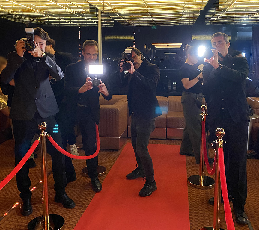 Animation PaparazziAnimation Faux Paparazzis pour un accueil VIP et original, comme à Cannes ! Offrez à vos invités une arrivée spectaculaire grâce à notre animation de faux paparazzis. Nos comédiens, équipés d’appareils photo et de flashs, recréent l’ambiance glamour d’un tapis rouge. Chaque invité devient une célébrité le temps de son entrée, sous les projecteurs et les applaudissements. Une mise en scène immersive pour vos événements Parfaite pour l’accueil des invités lors d’une soirée d’entreprise, d'un anniversaire, d'un mariage, d’un gala ou d’un lancement de produit, cette animation garantit des réactions spontanées et des souvenirs inoubliables. Une convivialité qui met tout le monde à l’aise. Réservez vos faux paparazzis pour votre prochain événement Cette animation inclus 1 photographe professionnel et 3 ou plus faux paparazzi. Plus le nombre de figurants est important, plus l'animation fera son effet. (minimum 5 paparazzis, photographe inclus). Habillé en smoking, les paparazzis feront tout pour mettre en valeur vos invités, qui se prendront au jeu et seront flattés de poser comme des Stars sur le tapis rouge. • Tarif sur Paris : à partir de 2000 €HT + TVA 20% • Durée de l’animation : De 45mn à 1h30 pendant l'accueil des invités • Référence : Balenciaga au Palais Brongniart, pour 500 invités, avec 8 paparazzis voir un extrait vidéo ici |